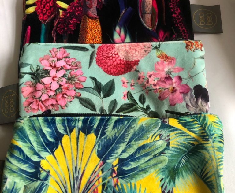 Our botanical velvet collection - purse £25, clutch bag £35, make up/ wash bag £30